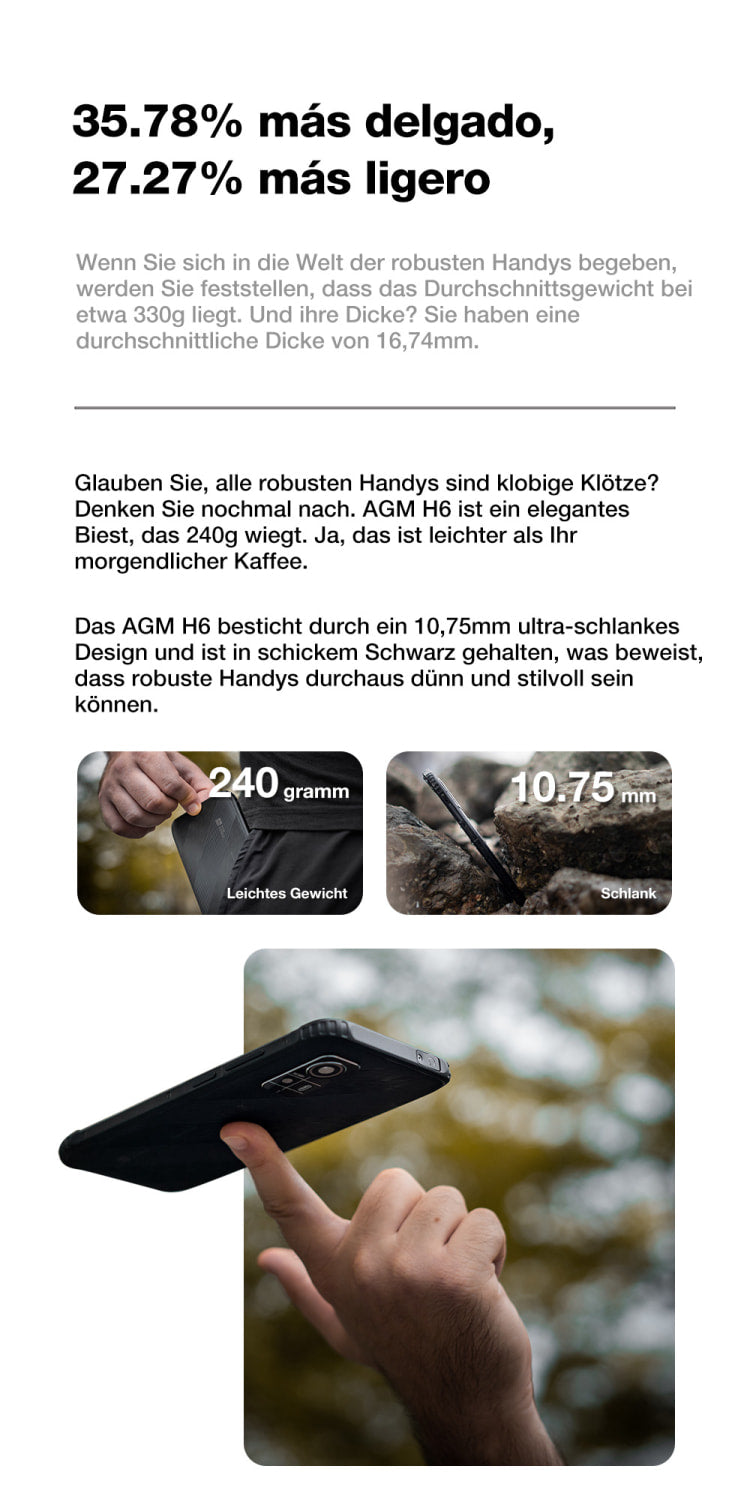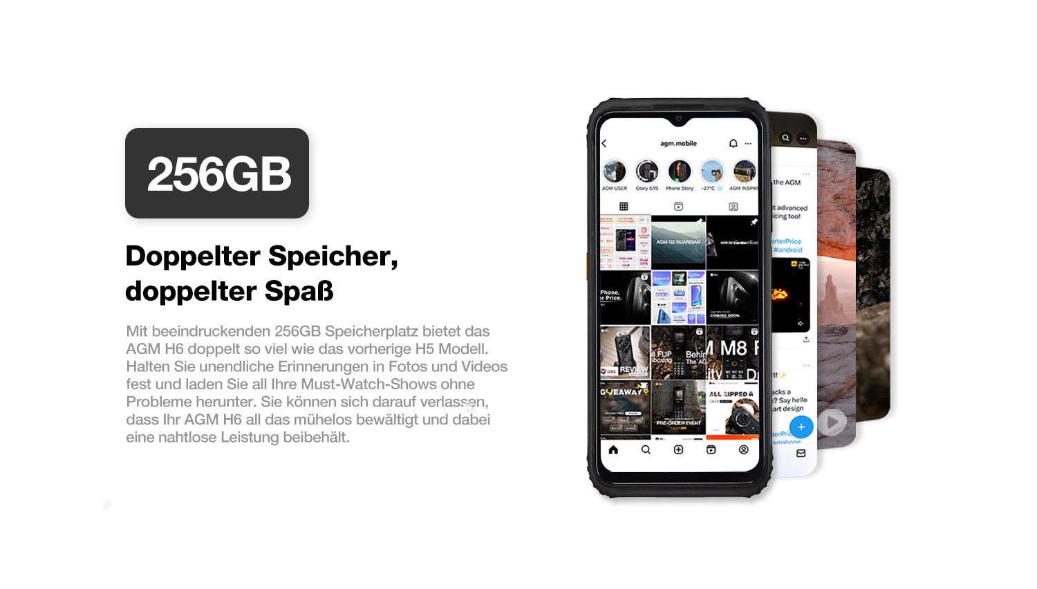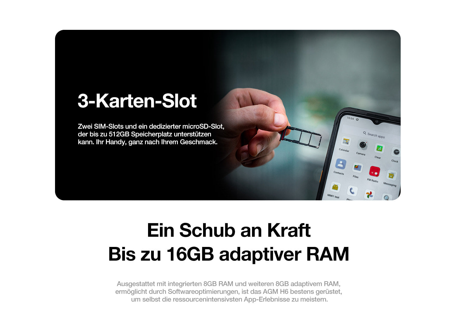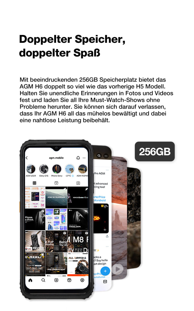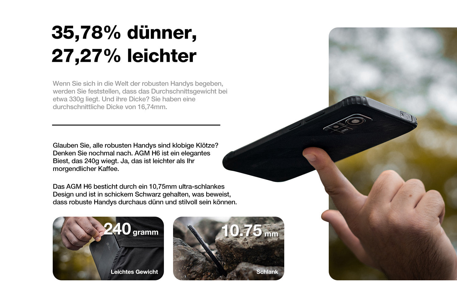 AGM H6 | Ultradünn | Robust | 6,56-Zoll-Display mit 90 Hz | 8 GB RAM + 8 GB Virtueller Erweiterter RAM + 256 GB ROM | Android 13