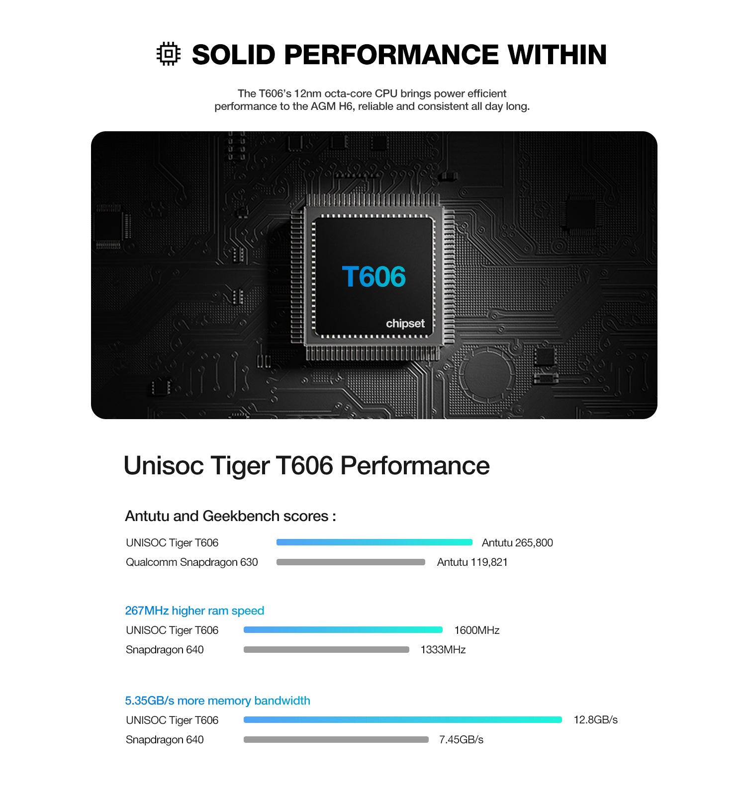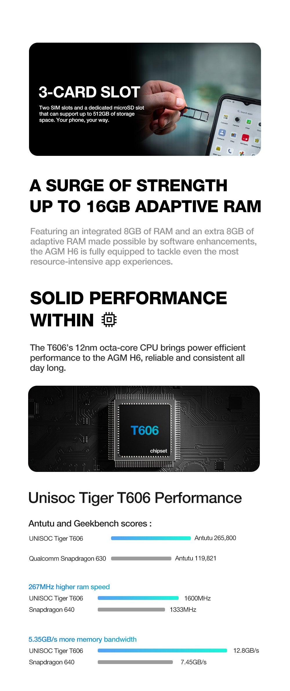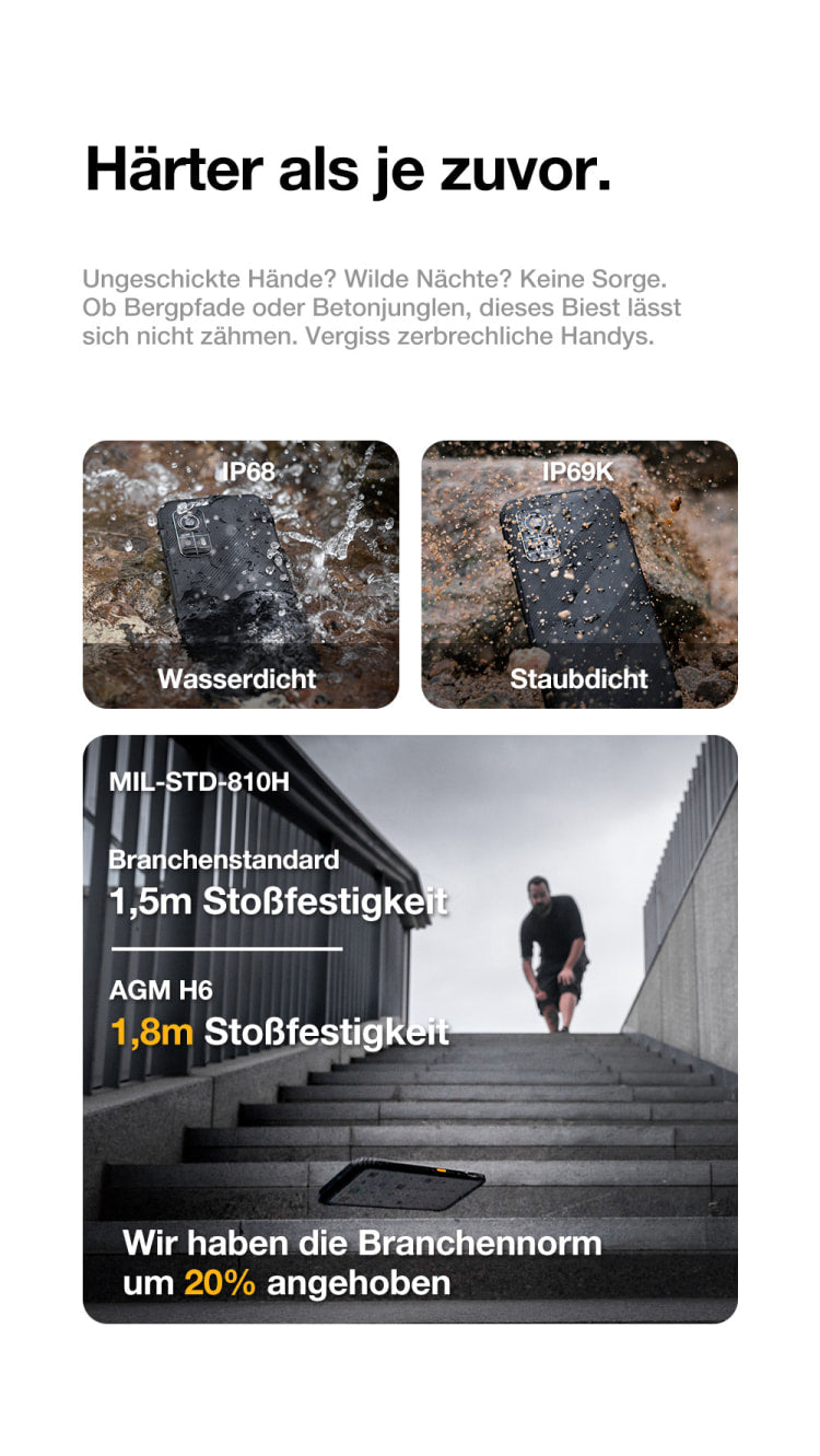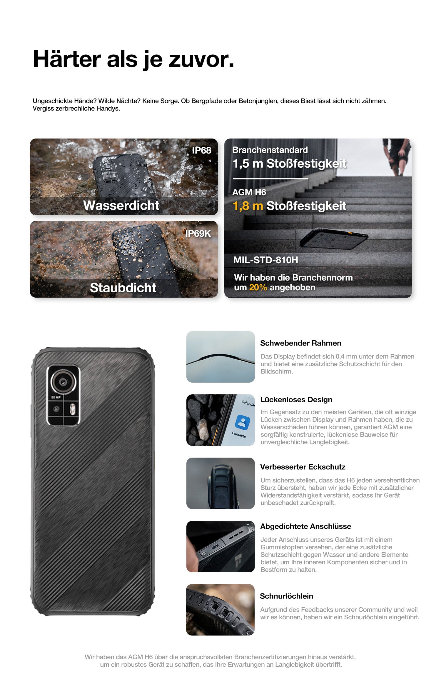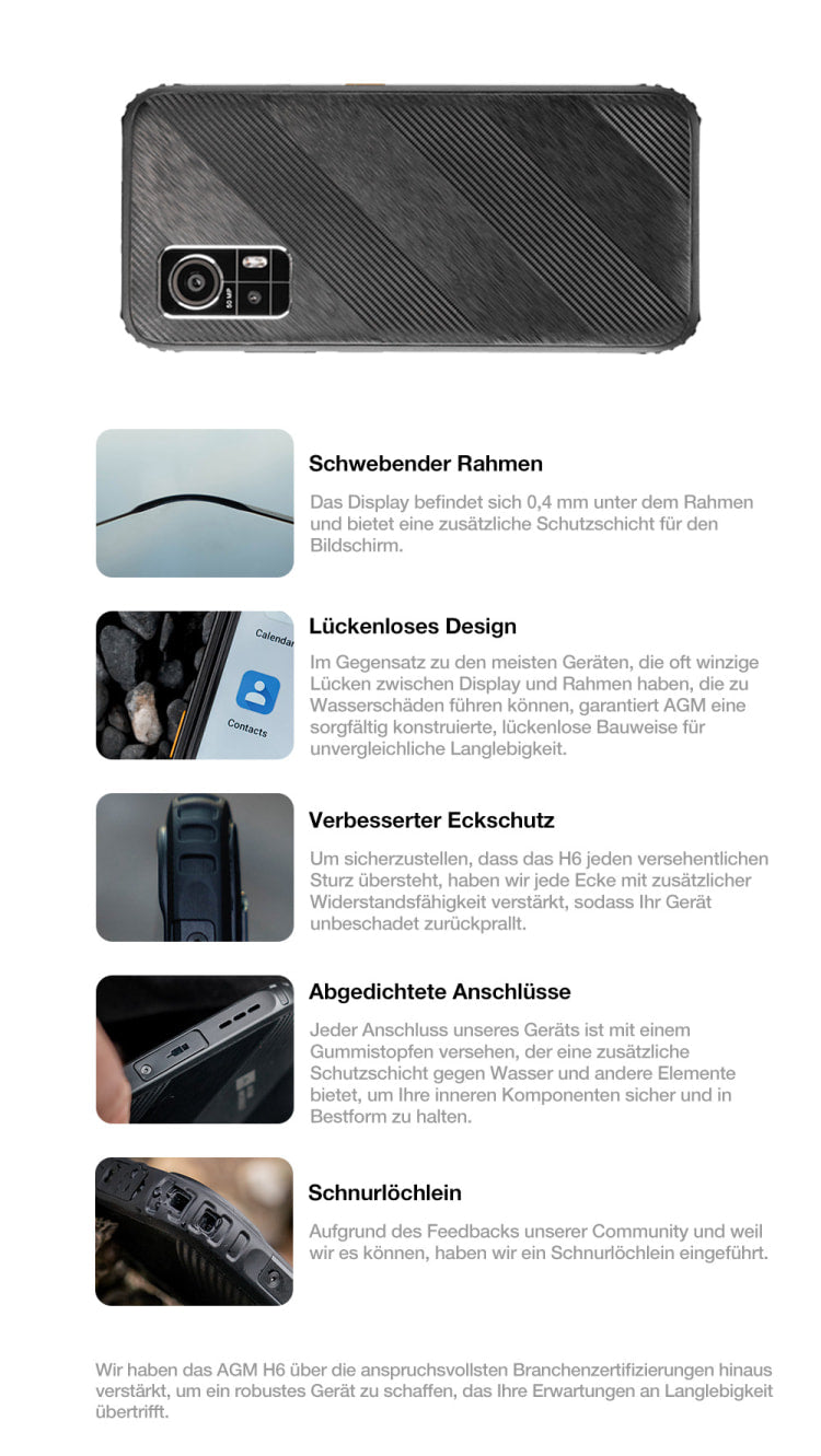 AGM H6 | Ultradünn | Robust | 6,56-Zoll-Display mit 90 Hz | 8 GB RAM + 8 GB Virtueller Erweiterter RAM + 256 GB ROM | Android 13