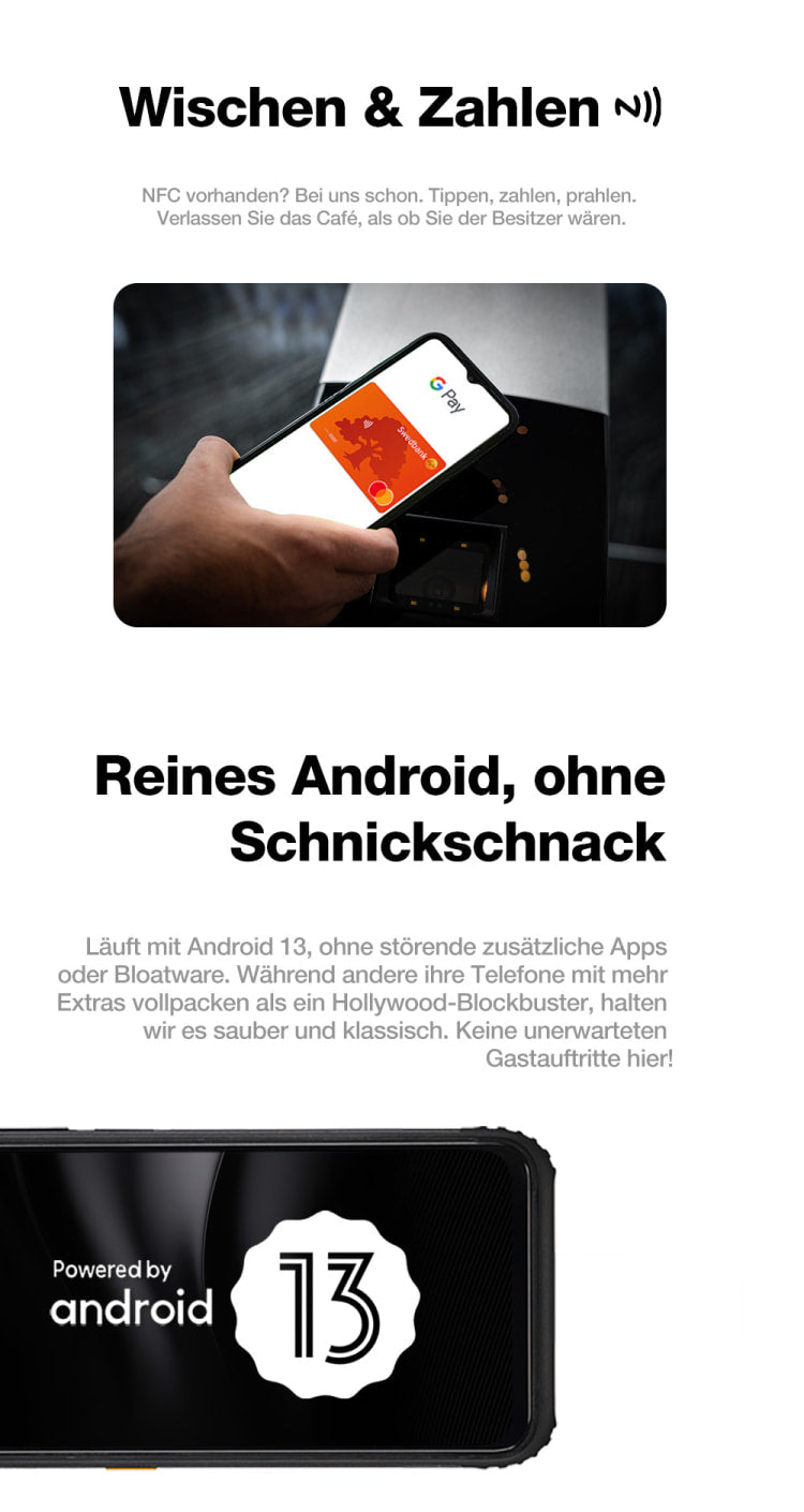 Betriebssystemversion für den internationalen Markt: Android 13 (native)