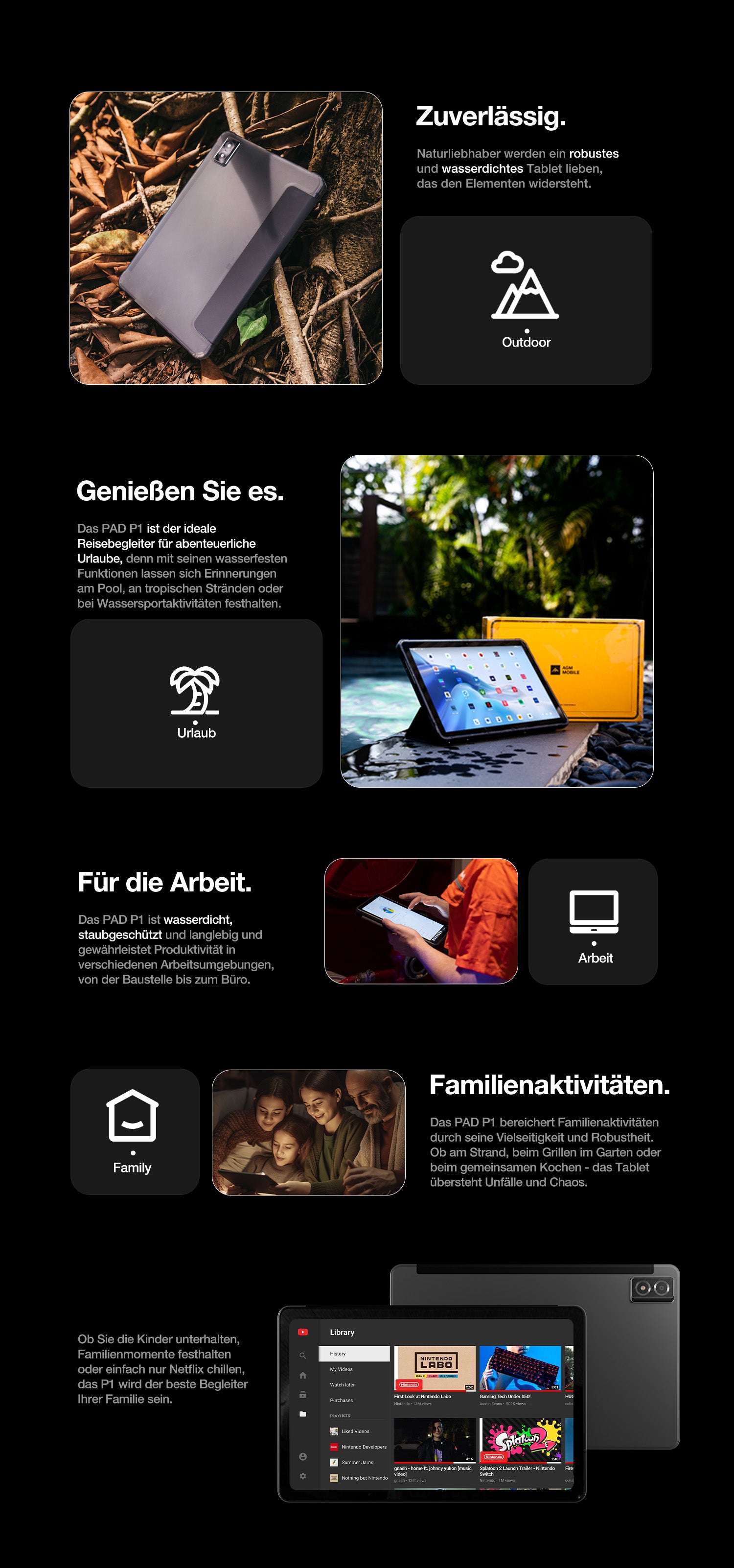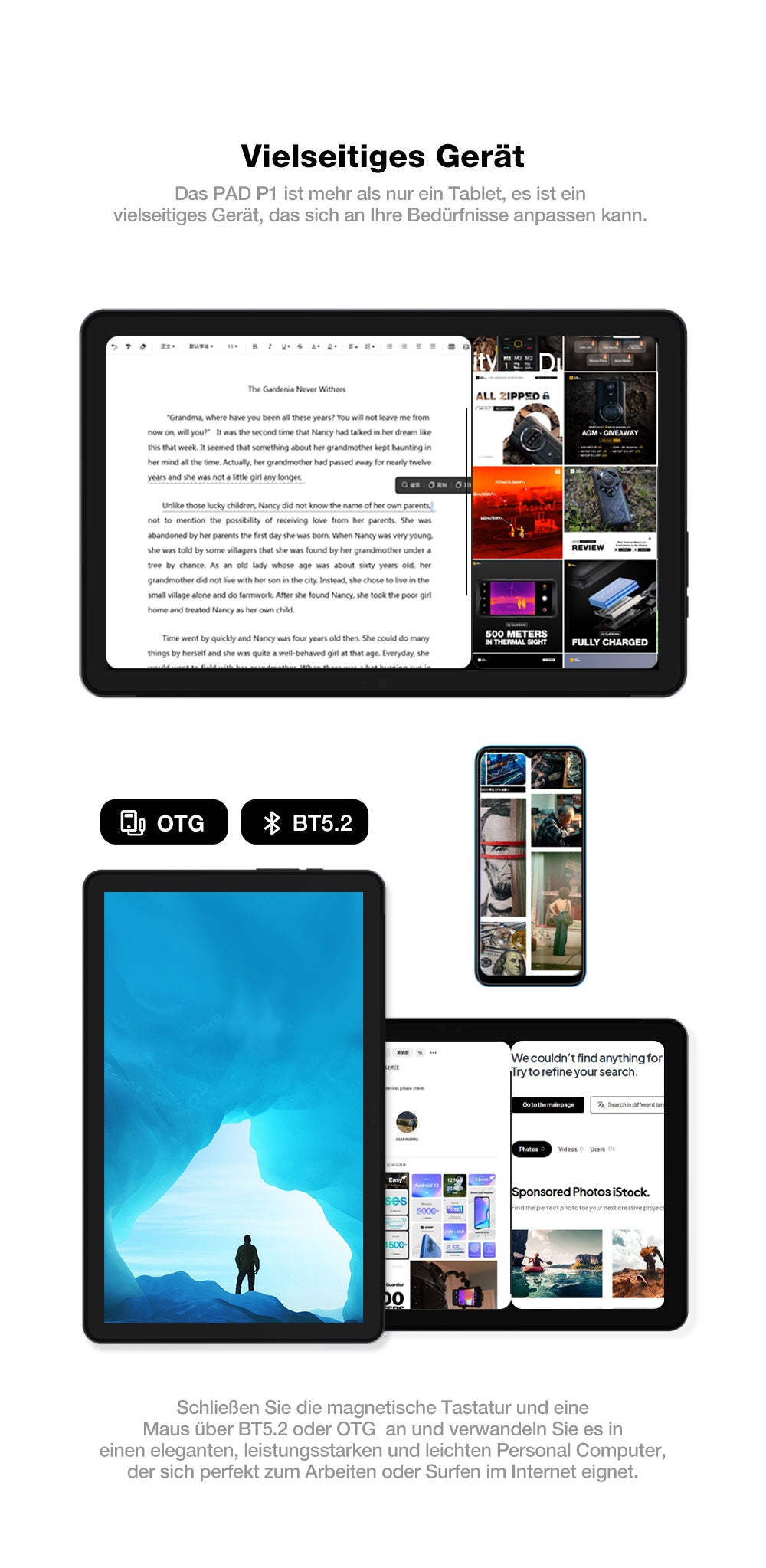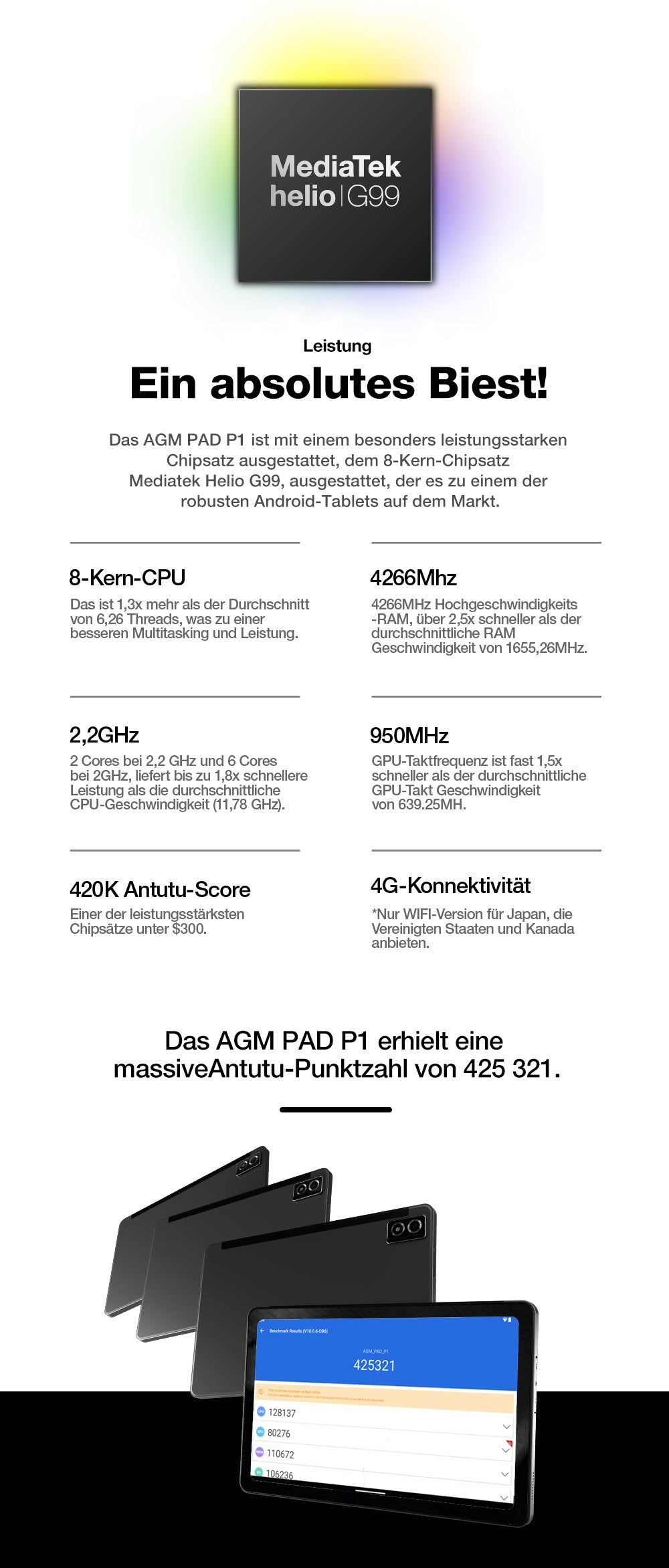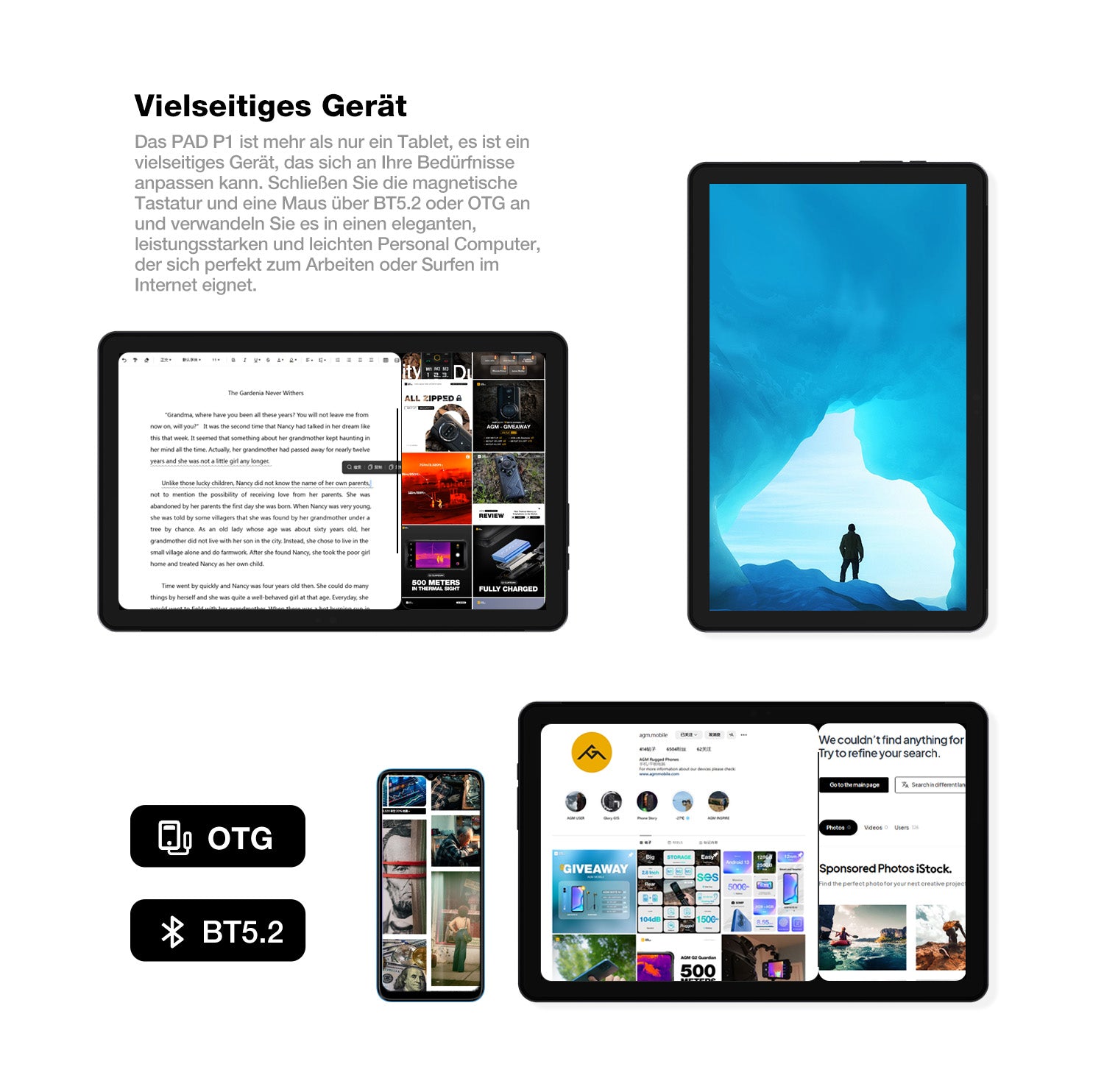 AGM PAD P1 | 4G LTE Robustes Tablet | Leistungsstarker Chipsatz | Wasserdicht | Leichtgewicht | Großer Bildschirm 1200*2000 FHD | Großer Akku | Android 13