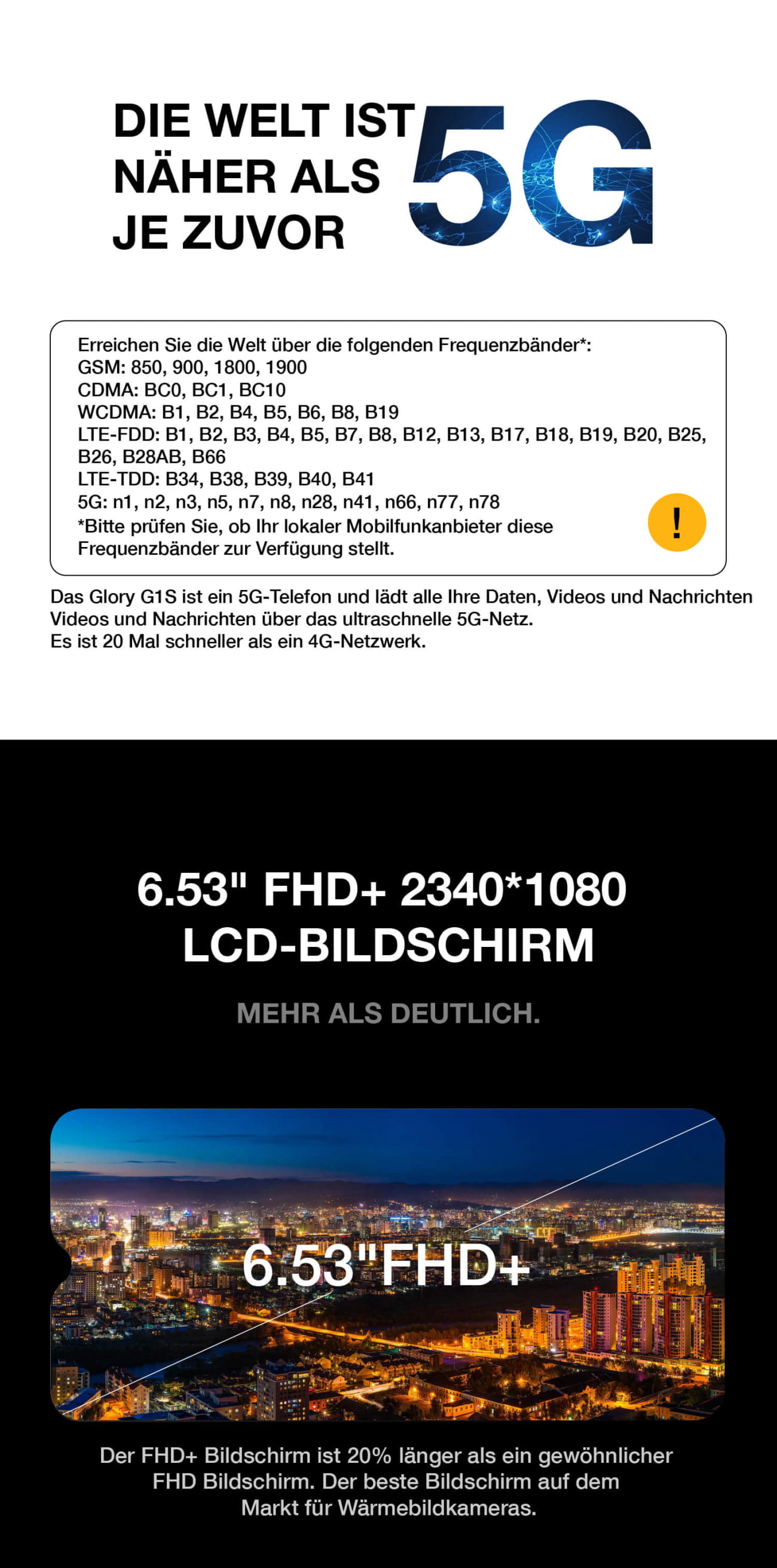 AGM Glory G1S | 5G Robustes Smartphone | Höchste Auflösung der Wärmebildkamera: 256 x 192 Bildrate: 25 FPS