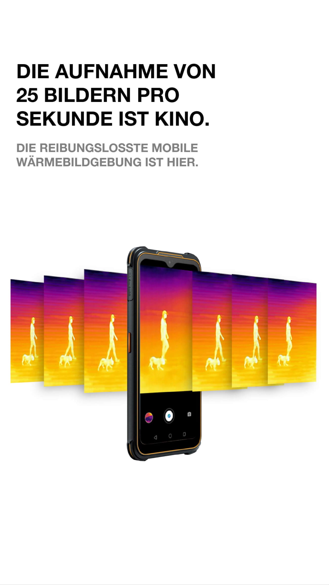 【256*192 Handy-Wärmebildkamera mit der höchsten Auflösung】AGM Glory G1S Outdoor Handy ist mit der besten Handy-Wärmebildkamera auf dem Markt ausgestattet, schnellere Reaktion, klarere Bilder, ein Meilenstein in der Wärmebildbranche, mit einer Auflösung von bis zu 256*192, einer Bildwiederholfrequenz von 25FPS. Misst alle Objekte innerhalb von 5 Metern, im Bereich von eher -20 ° C bis 550 ° C. Die Laufruhe wird von keinem anderen Wärmebildgerät in der Preisklasse um die 1000 EUR erreicht.
